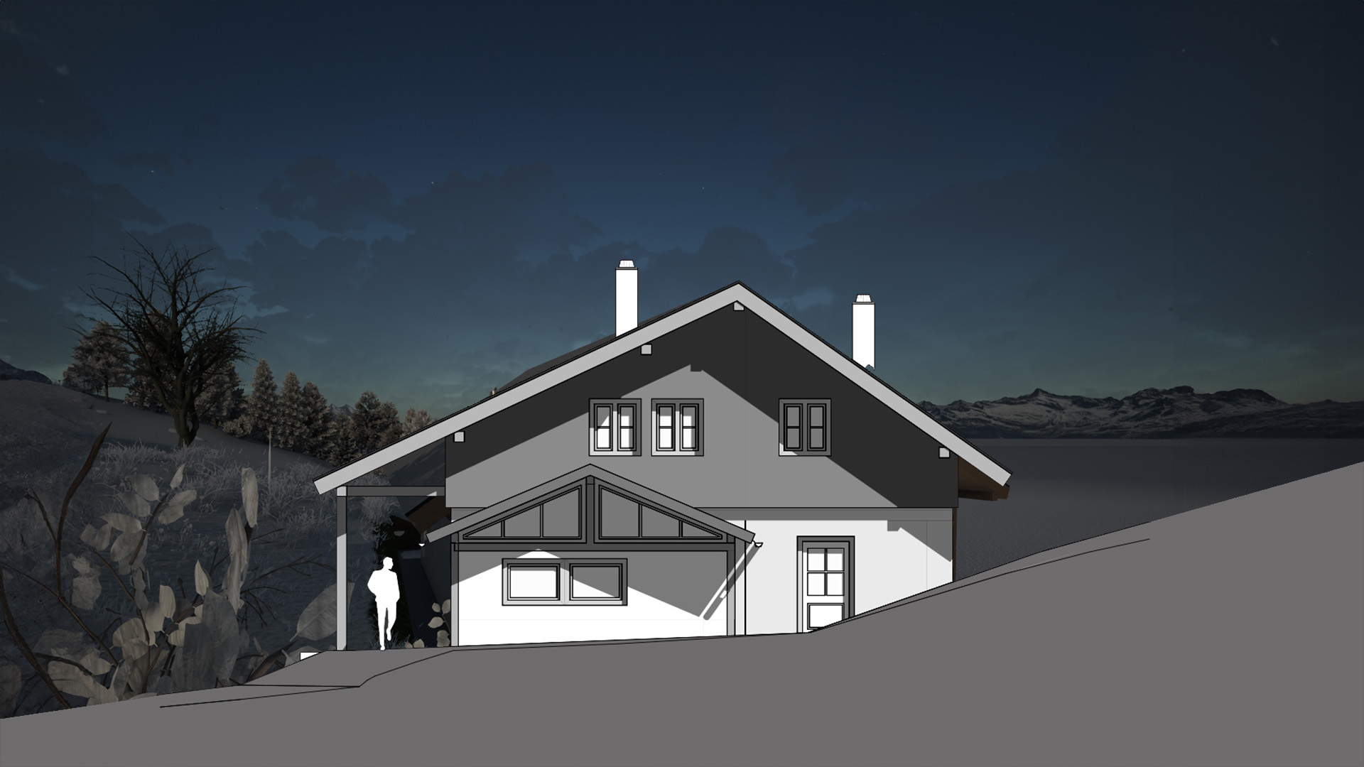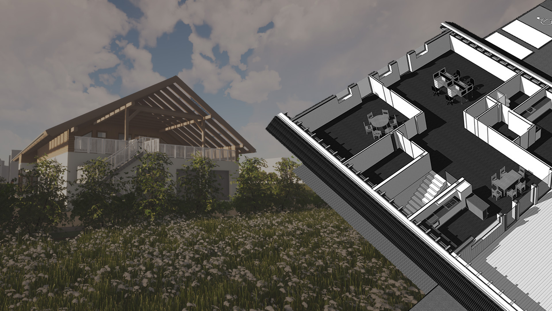 Realisierte Projekte aus der Tätigkeit der Entwurfs- und Einreichplanung sowie Visualisierungen für die Unternehmen m2-Holzbau GmbH und MAM Messe Agentur.
